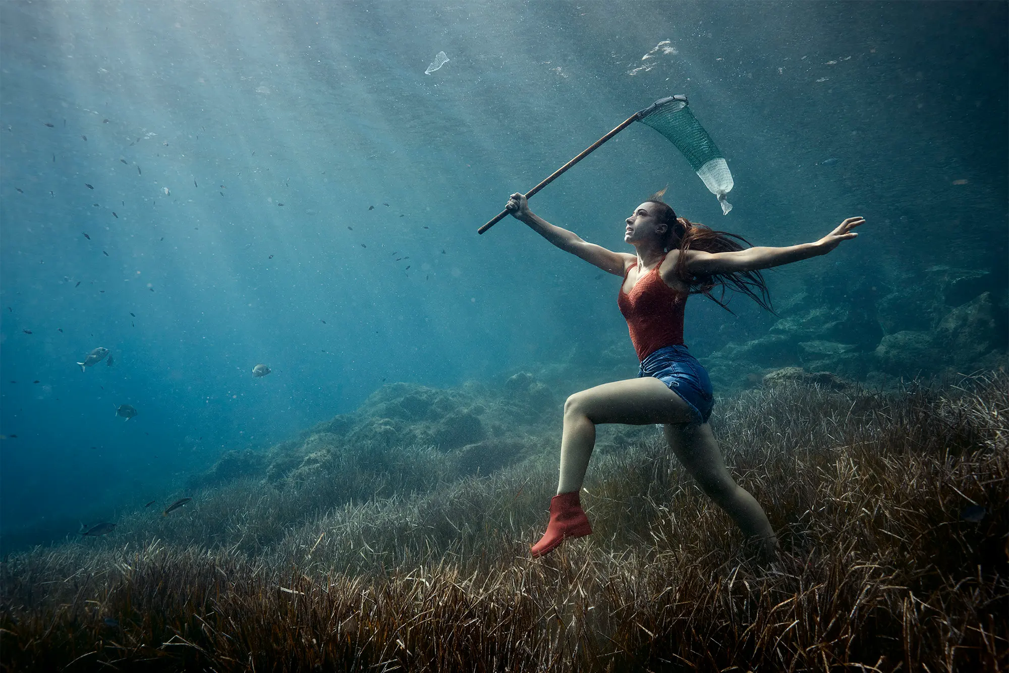 La série PLAHI plonge au cœur de l’urgence écologique à travers un prisme à la fois esthétique et dénonciateur. Sous la surface, la figure de la sirène incarne une faune marine en sursis, piégée dans un environnement saturé de déchets. En mêlant création visuelle et conscience environnementale, ces images mettent en lumière l’impact inévitable de la pollution plastique sur l’Océan et, par extension directe, sur l’Homme.