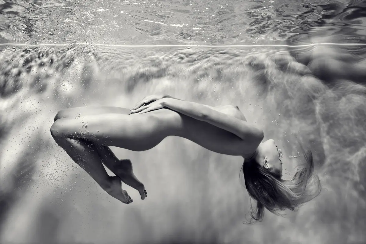 Sous le miroir de l’eau, je cherche la pureté absolue et une certaine forme d’angélicité. L’élément liquide devient un écrin pour sublimer le corps féminin, le libérant de toute pesanteur et de toute résistance. Dans cet univers suspendu, les courbes et les rondeurs se déploient avec une grâce qu'il est impossible de saisir à l'air libre.